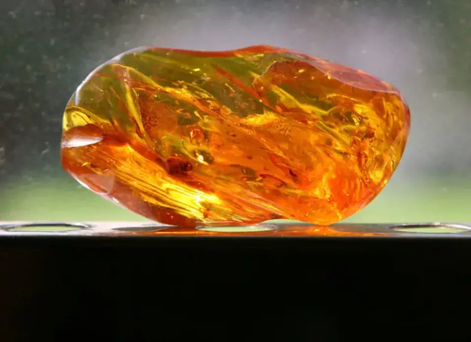 Genellikle sarı, turuncu ve kahverengi tonlarında bulunuyor ve şeffaf yapısıyla dikkat çekiyor. Bu taşın içinde zaman zaman fosilleşmiş böcekler veya bitki parçaları gibi doğal kalıntılar görülebilir.