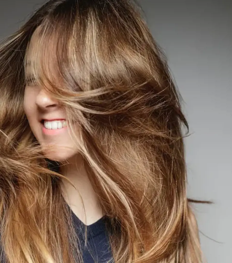 Saçlarının daha dolgun ve hacimli görünmesini sağlamak için kelebek saç kesimine yoğun katlar ekleyebilirsin.