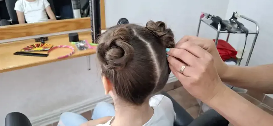 Örgülü ve çift topuzlu kız çocuk saç modeli, minik hanımlara en çok yakışan stillerden biri; iki kısma ayırıp örebilir ve örgülere topuz görünümü verebilirsin.